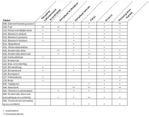- Ja? Dan zijn in principe alle pakketten mogelijk die met een + benoemd zijn bij het kerngebied. Wel moet u voldoen aan de voorwaarden die hieronder benoemd zijn per doelsoort.