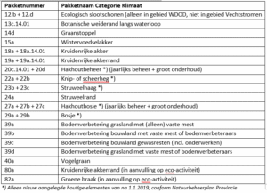Tabel 2: Mogelijke beheerpakketten binnen Categorie Klimaat. Klik op de tabel voor een grote weergave.
