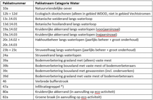 Tabel 1: Mogelijke beheerpakketten binnen Categorie Water. Klik op de tabel voor een grote weergave.