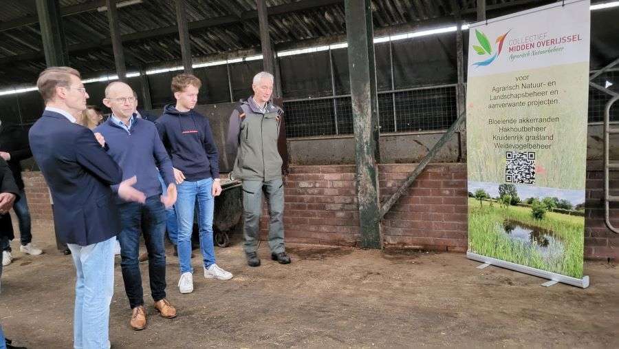 Foto: Minister Jaimi van Essen (LVVN) op bezoek bij OBD deelnemer Gezino Engberts